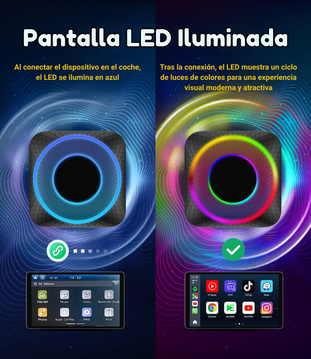 ✅ CarPlay y Android Auto sin cables: conéctalo una sola vez y disfruta de conexión automática cada vez que entres al coche.